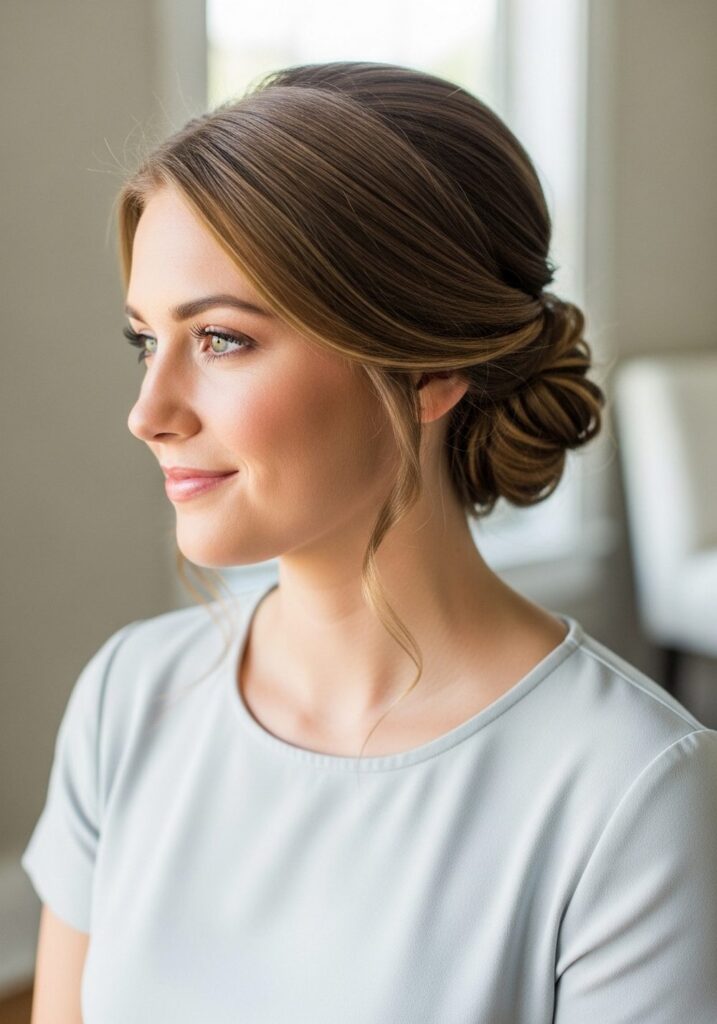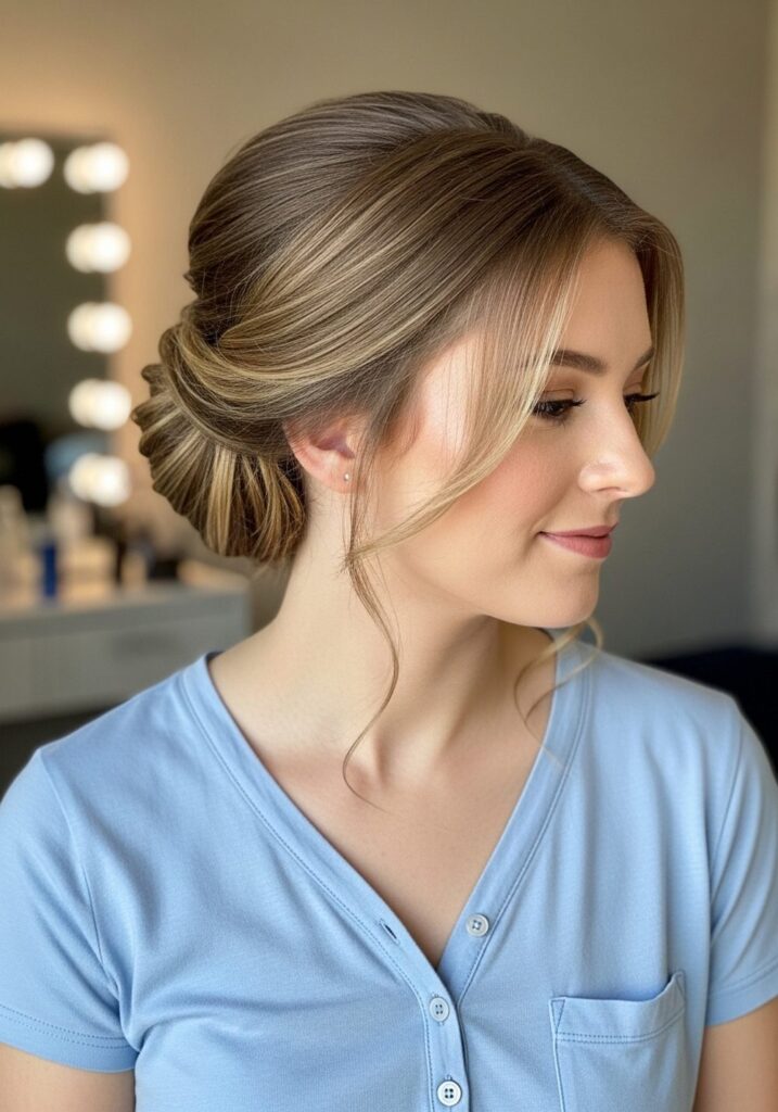 A classic low bun is a timeless choice that pairs beautifully with almost any prom outfit. This hairstyle works especially well with off-shoulder or backless dresses, highlighting your neckline and adding a sophisticated touch to your overall outfit idea.