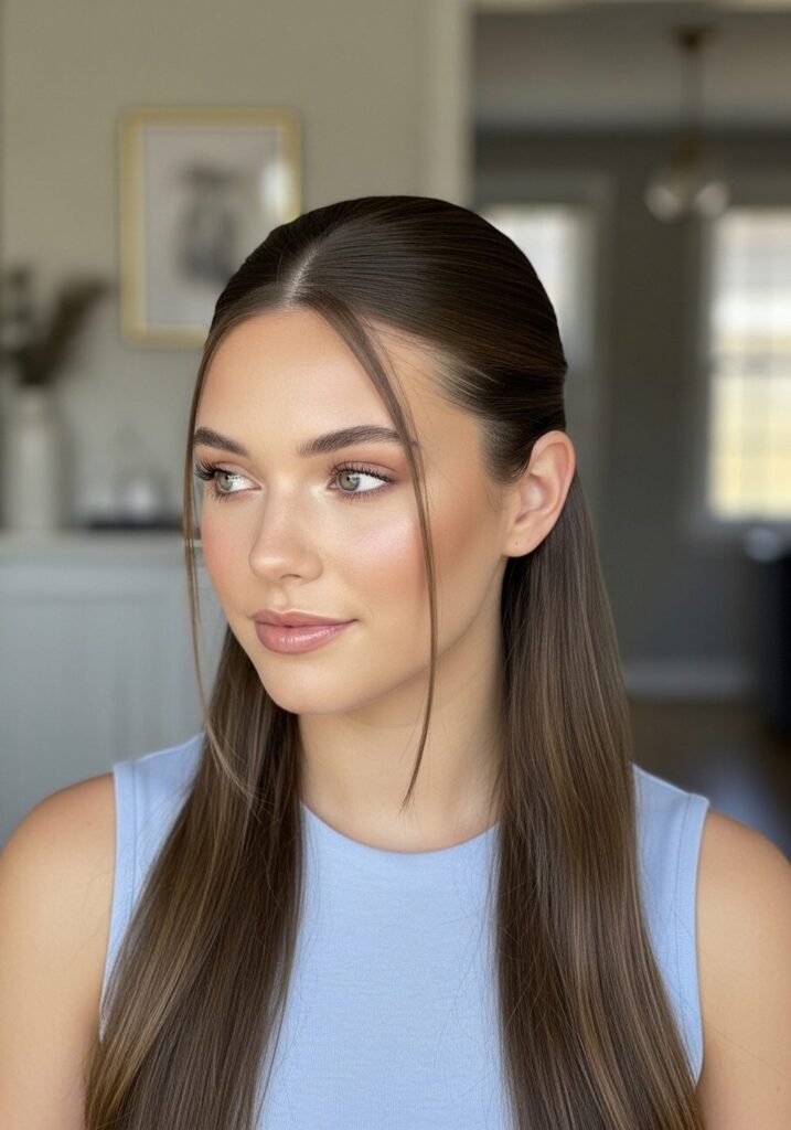 Straight and sleek hair is another simple yet powerful option. It works beautifully with bold outfits or statement dresses, allowing your overall look to stand out without too much effort in hairstyling.