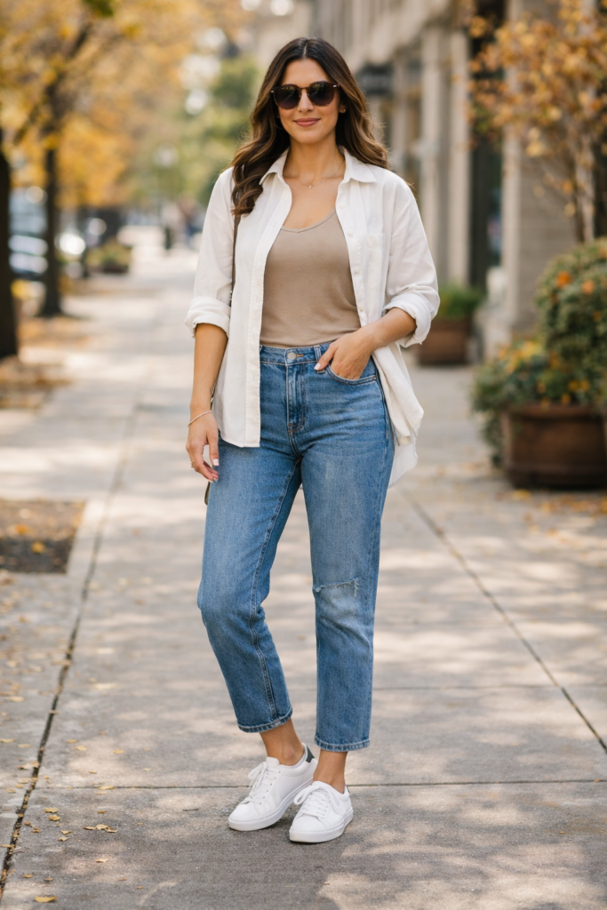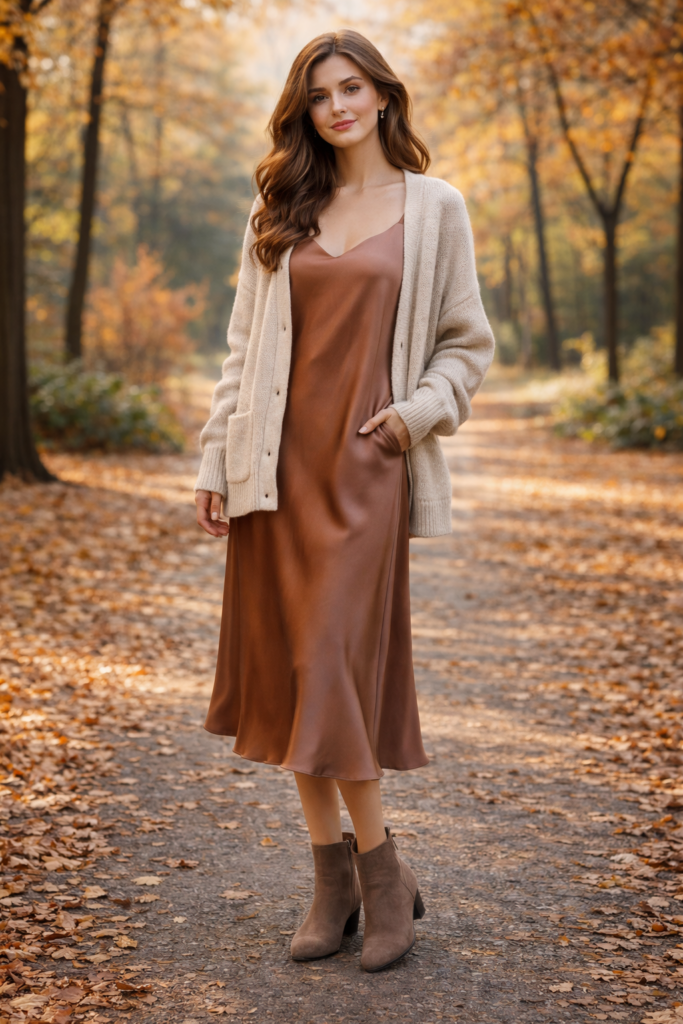 A cardigan is a must-have piece for cozy fall outfit ideas. Style a soft knit cardigan with classic blue denim and ankle boots for a relaxed everyday look. Layering is key in fall fashion, and cardigans make it easy to adapt to changing temperatures. Adding a scarf or tote bag can elevate the outfit while keeping it comfortable and practical.