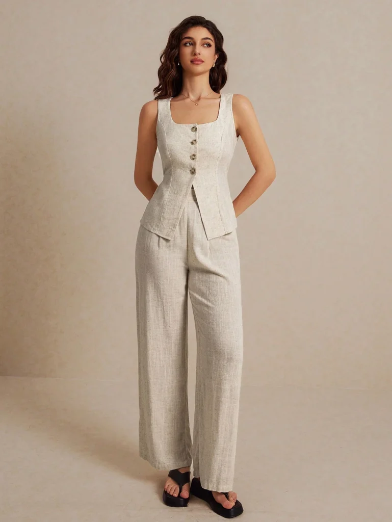 4. Neutral Blazer and Wide-Leg Trousers
