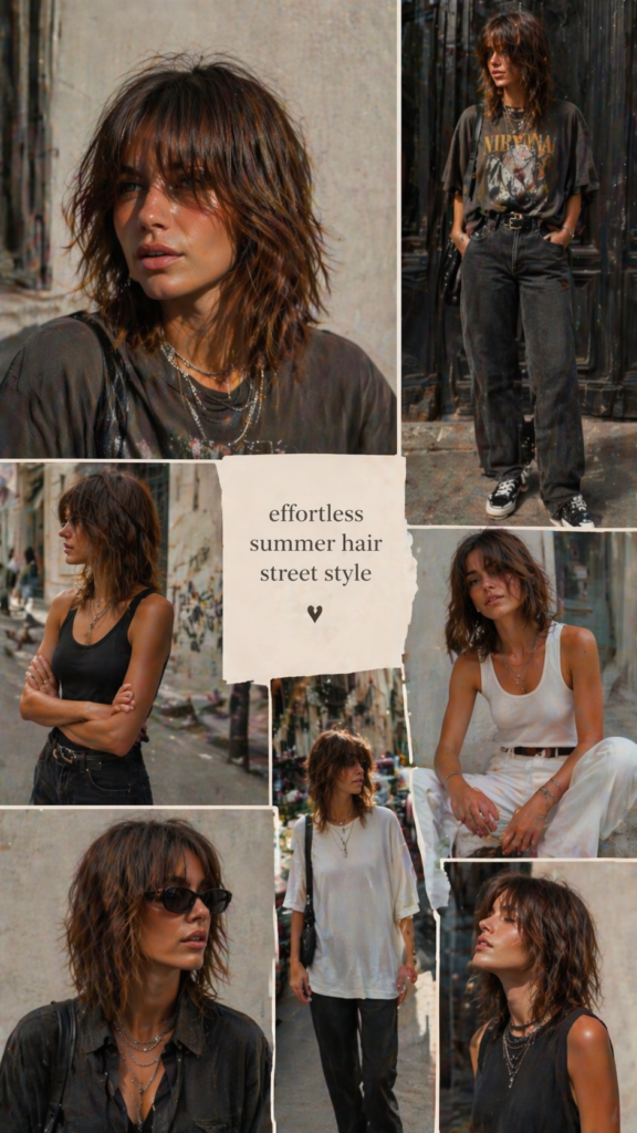 Shag haircuts are making a huge comeback, blending retro vibes with modern styling. The choppy layers create texture and volume, perfect for carefree summer days. This style looks amazing with edgy outfits and bold accessories, giving off a cool-girl vibe.
