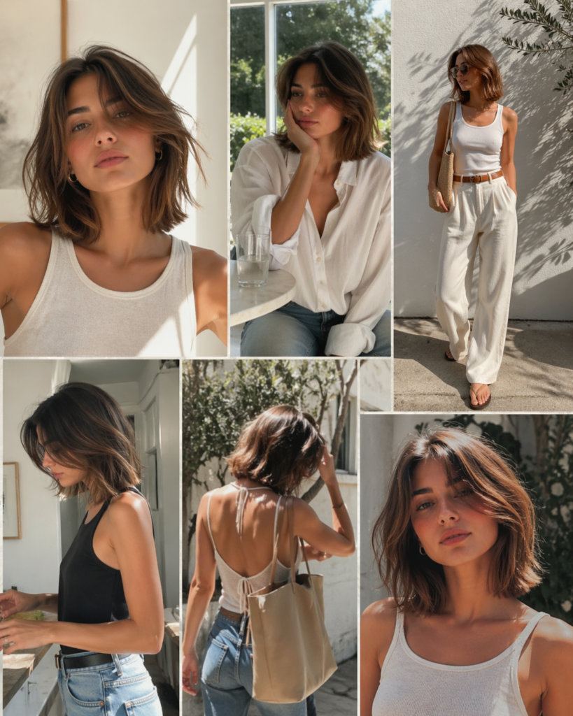 The blunt lob is perfect for those who love a clean, structured look. This haircut sits right above the shoulders, offering a balance between short and long styles. It’s ideal for hot weather as it keeps hair manageable while still looking polished. Pair it with minimalist outfits for a sharp, modern aesthetic.
