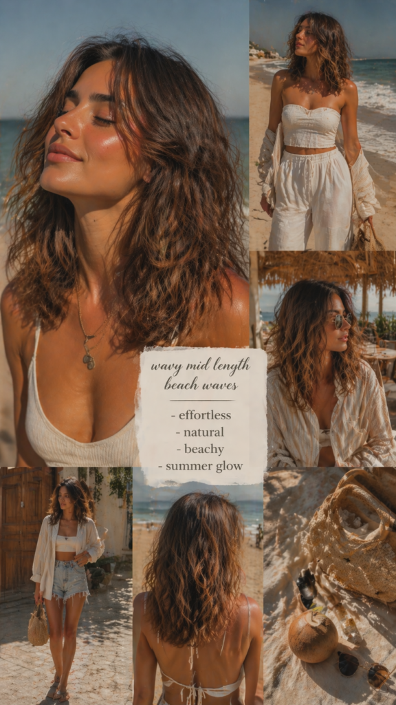 Mid-length wavy cuts are perfect for those who want something easy yet stylish. The natural waves add softness, while the length keeps it versatile. This haircut matches perfectly with beachwear and relaxed summer outfits.