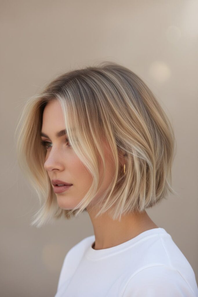 The blunt bob is one of the most timeless summer short hair ideas 2026 that never fails to look polished and fresh. This sleek haircut pairs beautifully with minimalist summer outfits, like linen sets or neutral-toned co-ords. It’s perfect for hot weather because it keeps your neck cool while still giving a bold, confident look. Style it straight with a center part for that clean aesthetic or tuck one side behind your ear for a soft vibe. This haircut works well for both casual days and elevated evenings, making it versatile and trendy.