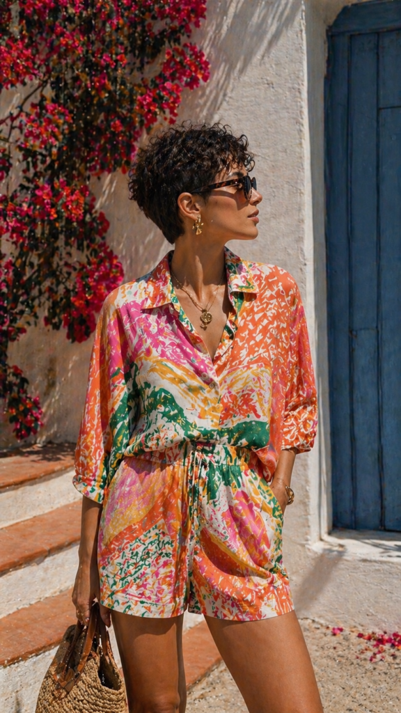 A textured pixie cut screams confidence and is one of the boldest short hair outfits ideas for summer 2026. This edgy look pairs perfectly with street style outfits, oversized tees, and biker shorts. The choppy layers add movement, making it ideal for humid weather. Add a little styling cream for a messy finish that looks intentionally undone. This hairstyle is all about freedom and low maintenance while staying stylish.