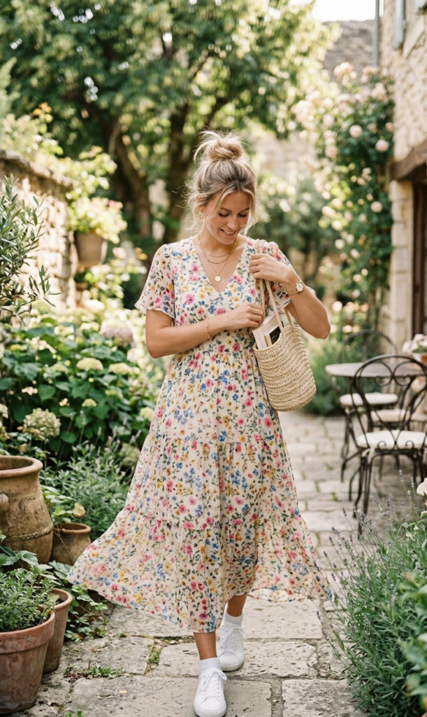 A lightweight floral dress instantly elevates your summer wardrobe. This outfit idea blends comfort and femininity, making it ideal for brunch or beach strolls. Pair it with sandals and a straw bag for a trendy yet relaxed look.